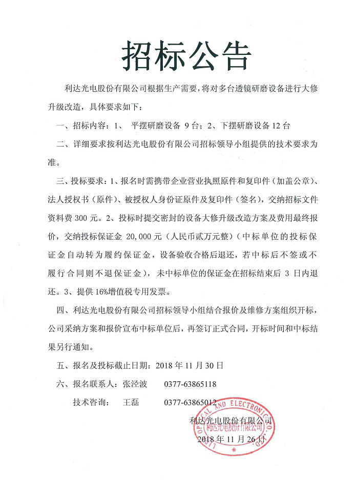 研磨設(shè)備大修升級改造招標(biāo)公告