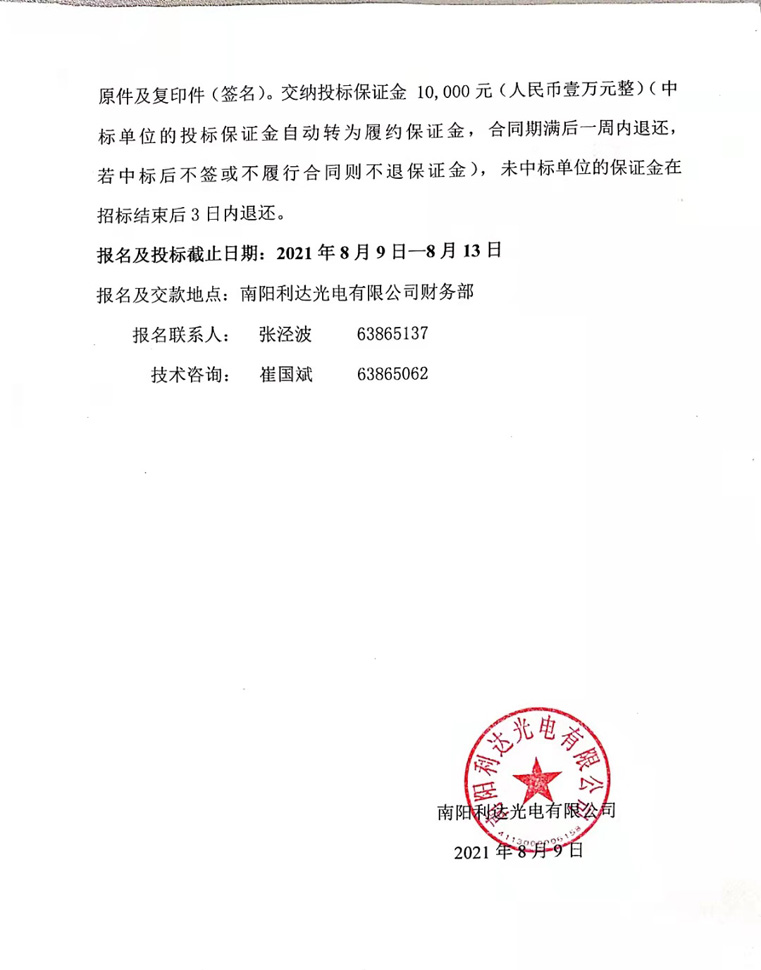 - (2025-07-17)利達(dá)光電公開招聘財(cái)務(wù)部部長(zhǎng)擬錄用人員公示