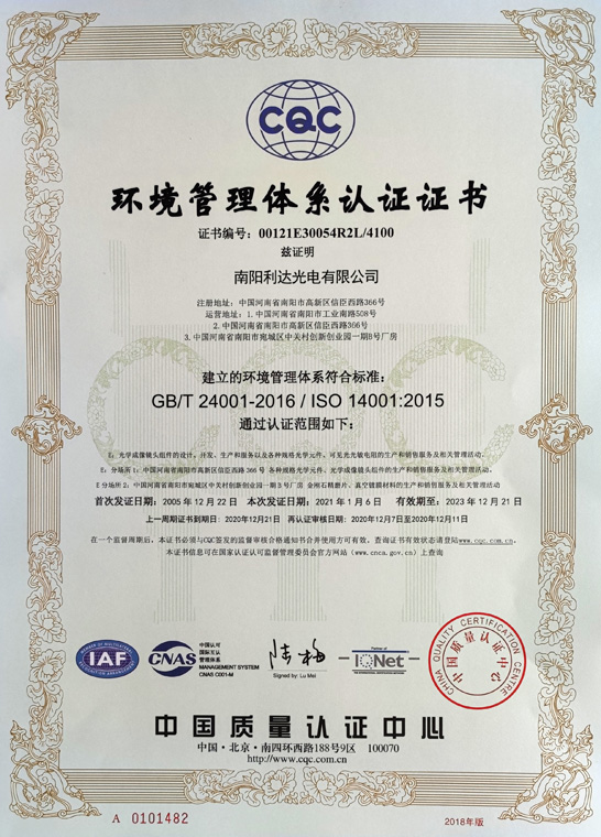 環(huán)境管理體系認證證書(中文)